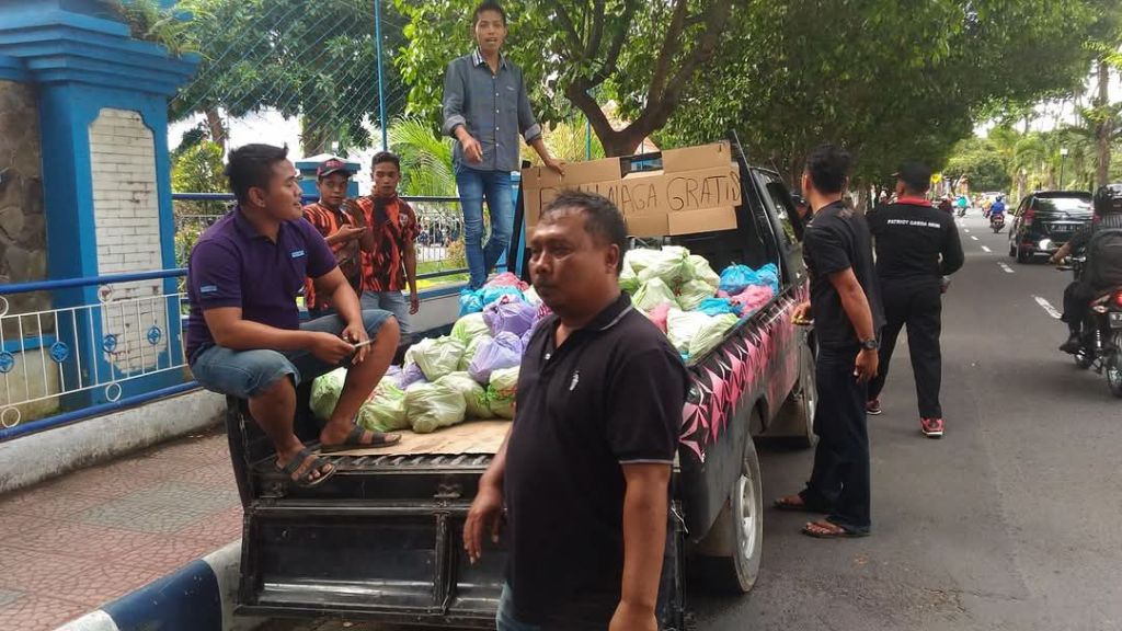 “Monggo, ini buah naganya gratis. Hasil bumi asli daerah Tumpang Pitu,” kata seorang pemuda asal Dusun Silirbaru, Desa Sumberagung, Kec. Pesanggaran, Banyuwangi sambil memberikan satu kresek berisi buah naga kepada petugas satpam PN Banyuwangi.