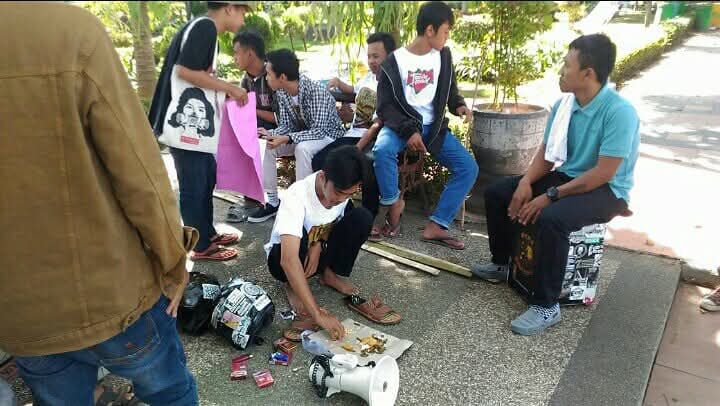 Keterangan foto: SARAPAN BERSAMA MEGAPHONE. Seorang anggota Kamtis Family Banyuwangi tengah menikmati sarapannya di sela-sela aksi solidaritas untuk Budi Pego.
