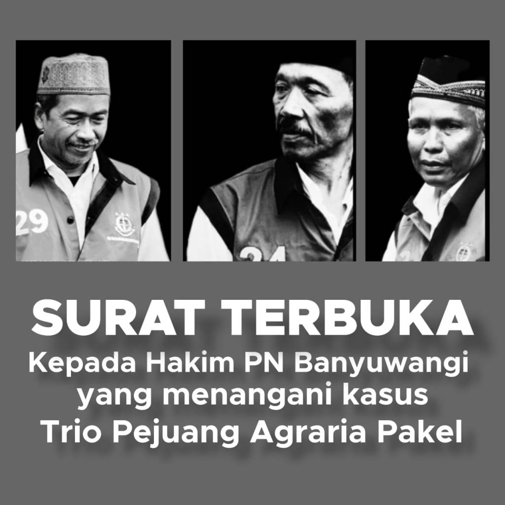- Bahwa surat terbuka ini kami buat sebagai bentuk dukungan untuk tiga petani dari Desa Pakel, Kecamatan Licin, Kabupaten Banyuwangi, Provinsi Jawa Timur yaitu terdakwa Suwarno, Mulyadi dan Untung yang saat ini sedang menunggu sidang putusan di Pengadilan Negeri Banyuwangi akibat kriminalisasi dan hukum yang tidak berpihak pada warga;