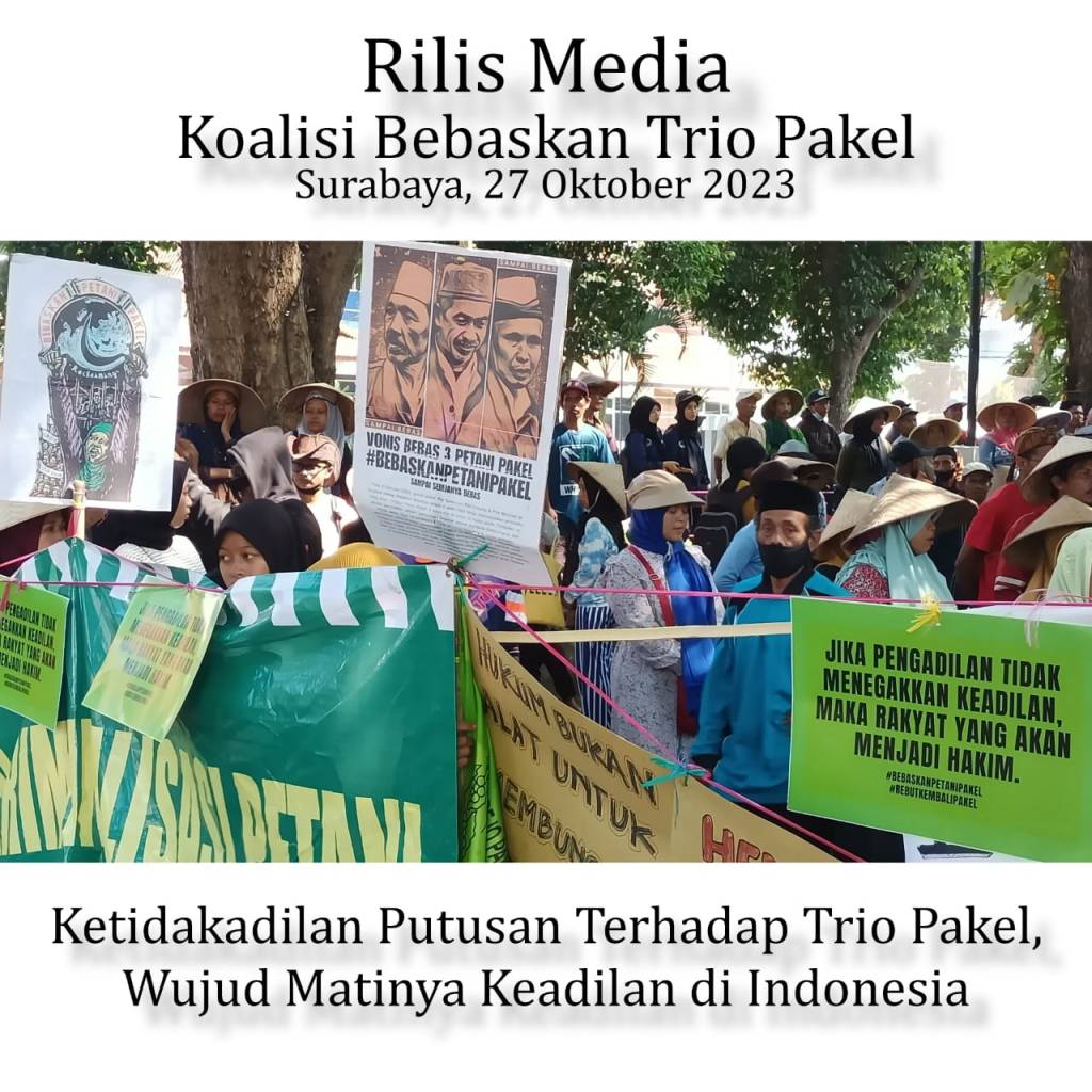 Kamis, 26 Oktober 2023 Pengadilan Negeri Banyuwangi kembali menorehkan catatan hitam, majelis hakim yang bertugas menjatuhkan vonis tidak manusiawi kepada tiga warga dari Desa Pakel, Kecamatan Licin, Kabupaten Banyuwangi. Vonis sejumlah 5 tahun 6 bulan dengan tuduhan menyebarkan berita bohong sehingga mengakibatkan keonaran, di tengah bukti yang lemah dan kondisi desa yang tengah dilanda konflik agraria adalah keputusan gegabah.
