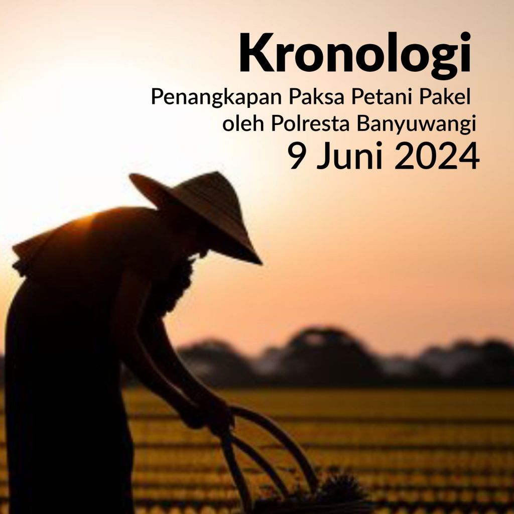 Pada Minggu Malam, tanggal 9 Juni 2024, Muhriyono warga Desa Pakel, Kec. Licin, Banyuwangi yang tergabung dalam Rukun Tani Sumberejo Pakel (RTSP) dibawa paksa oleh orang tidak dikenal (OTD) yang mengaku sebagai polisi, yang ternyata anggota Polresta Banyuwangi
